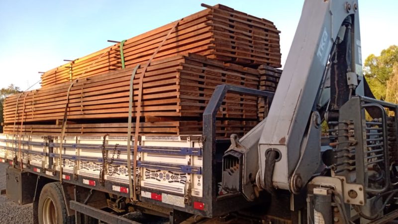 Depois de escolhida, a madeira fica guardada no depósito da empresa para tempo de secagem.